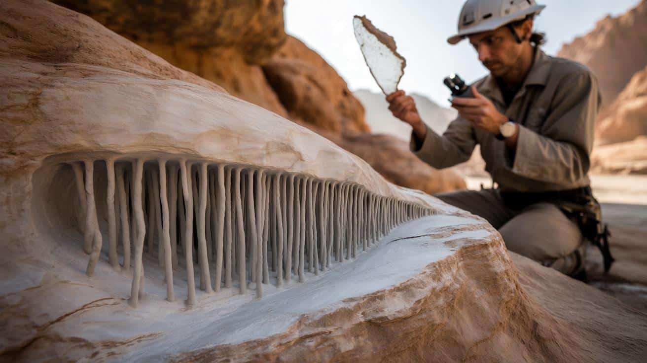 Wat eerst leek op banale krasjes in marmer en kalksteen, intrigueert nu een groep geologen én microbiologen. In Namibië, Oman en Saudi-Arabië tonen rotsen smalle, dode rechte tunnels die weinig gemeen hebben met natuurlijke breuken of klassieke fossielen.